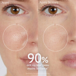 | Résultats visibles | 90% ont vu leur peau moins brillante* |
