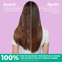 - Résultats prouvés : 95% des utilisatrices constatent des pointes réparées et espacent leurs rendez-vous chez le coiffeur !