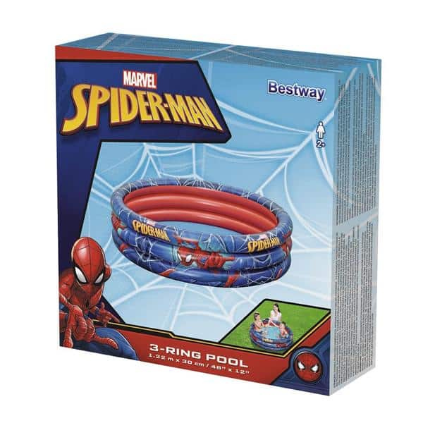 Faites profiter votre enfant d’une pause rafraîchissante dans cette piscine gonflable trois boudins, d’un diamètre de 122 cm et d’une hauteur de 30 cm, à l’effigie de Spider-Man.